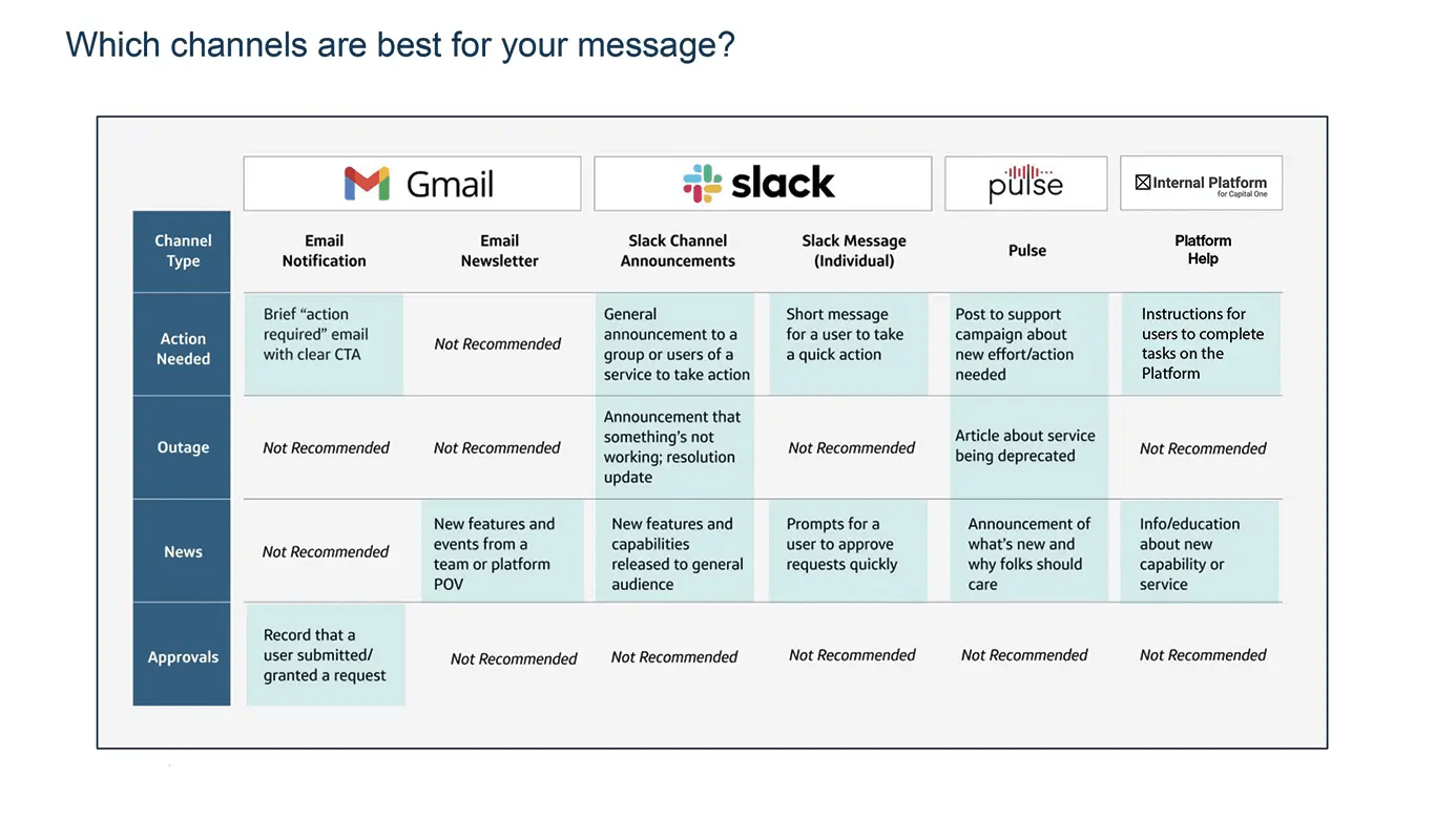 My team presented the communication strategy framework at the company’s annual enterprise data conference to all product leads—the first official communication guidelines for the internal platform. The session had strong attendance and sparked valuable discussions about how to reach users more effectively without overwhelming them.
