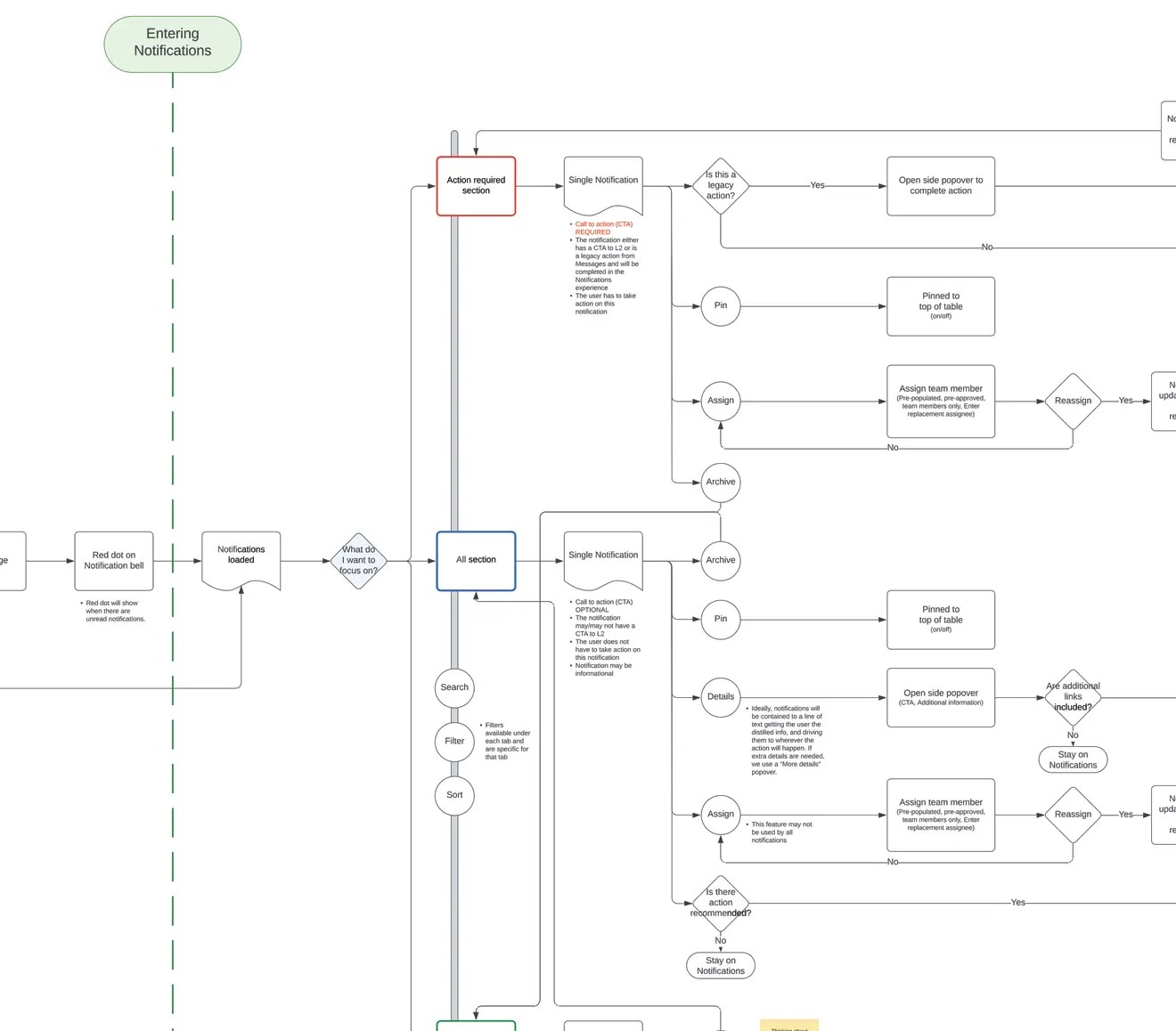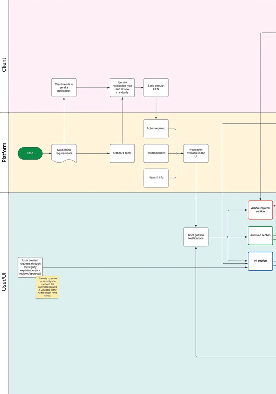 Process flow defining team responsibilities—clarified who handles what in the notification system